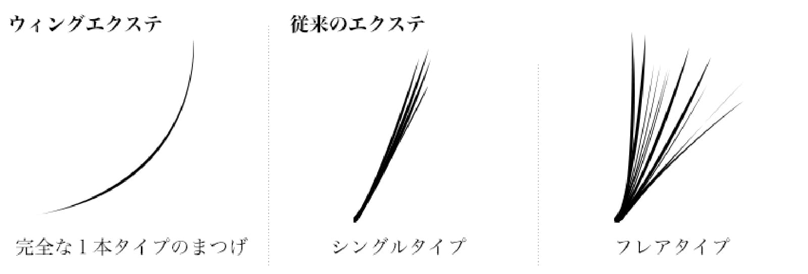 ウィングエクステ(ウィングエクステンション)は、自まつ毛と変わらない完全に1本のまつ毛になっているので、